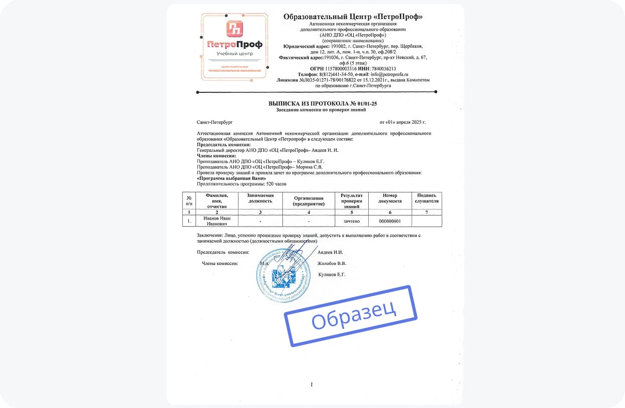 Благодаря «ПетроПроф» я получил структурированные знания и уверенность в своих силах. Особенно понравилось актуальность представленных образовательных программ, а также возможность обучения дистанционно в онлайн формате. За мной был закреплен менеджер, который курировал меня от вводной консультации до получения сертификата. Все организационные вопросы решались в один клик. Если вы сомневаетесь — не раздумывайте! Это инвестиция в себя, которая точно окупается. Всем знакомым, кто хочет расти профессионально, я теперь рекомендую только «ПетроПроф»!